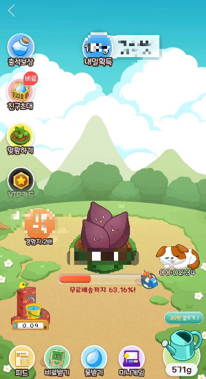 일단 친구들 농장에 다 들어가서 물을 줘서 비료를 받은 후, 비료받기 탭에 들어가서 매일 출석하기,