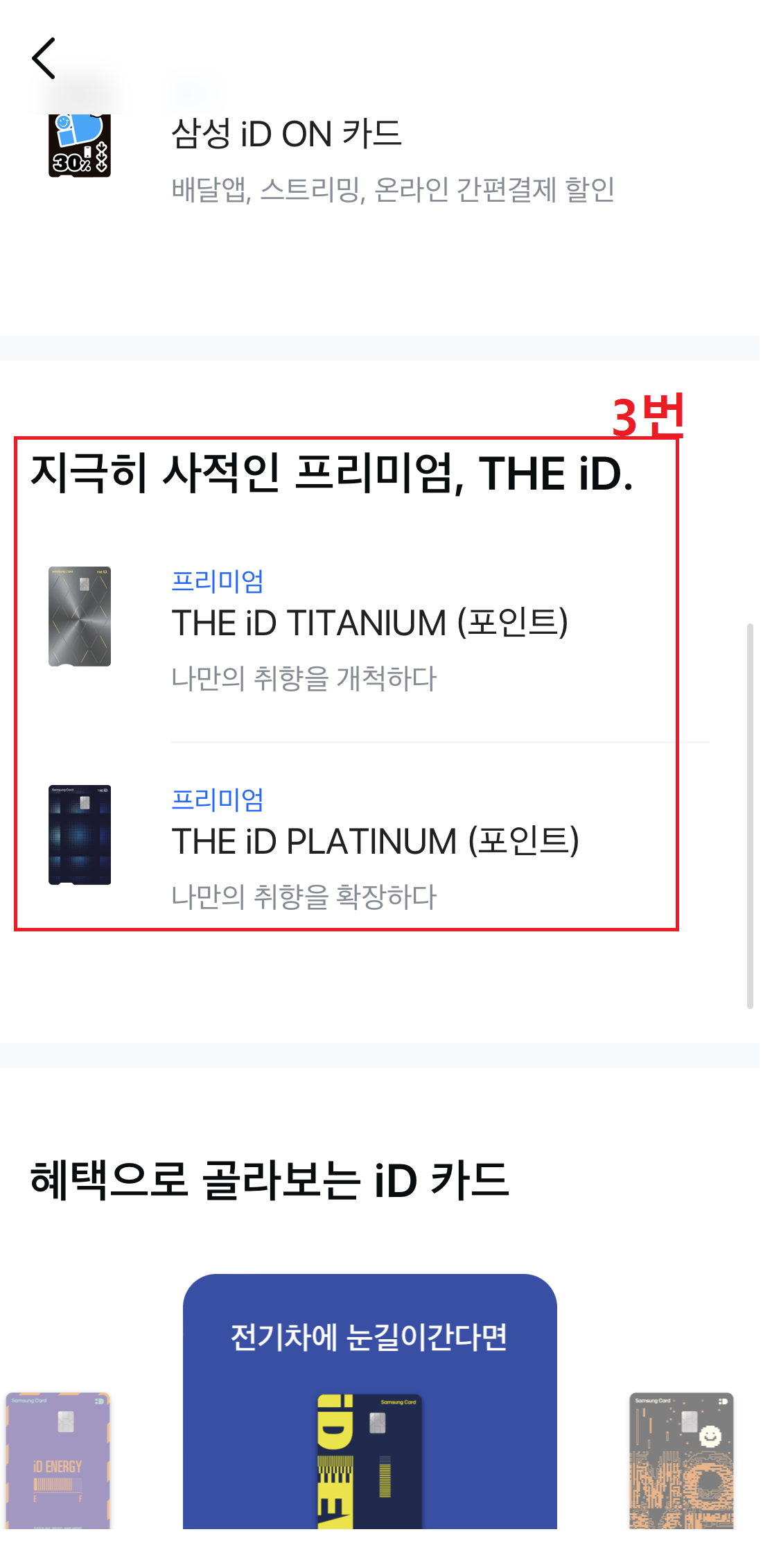 자! 세번째 미션은 지극히 사적인 프리미엄? 이라는건데 이건 카드홍보네요! 아까 두번째와 방법은 비슷한데 상품으로 들어가서 카드 탭을 눌러줍니다. 그리고 밑으로 내리다보면 지극히 사적인 프리미엄, iD 카드에 대한 내용이 나오는데 둘 중 하나를 클릭해주시면 된답니다.